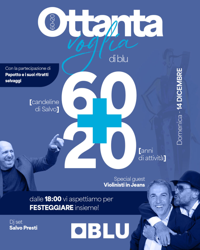 Lo scorso 14 dicembre si è tenuto l’evento “Ottanta voglia di Blu”, una serata speciale tra musica, design e amicizia, organizzata per celebrare due traguardi importanti: i 60 anni di Salvo, fondatore e anima di Blu, e i 20 anni di attività del negozio.